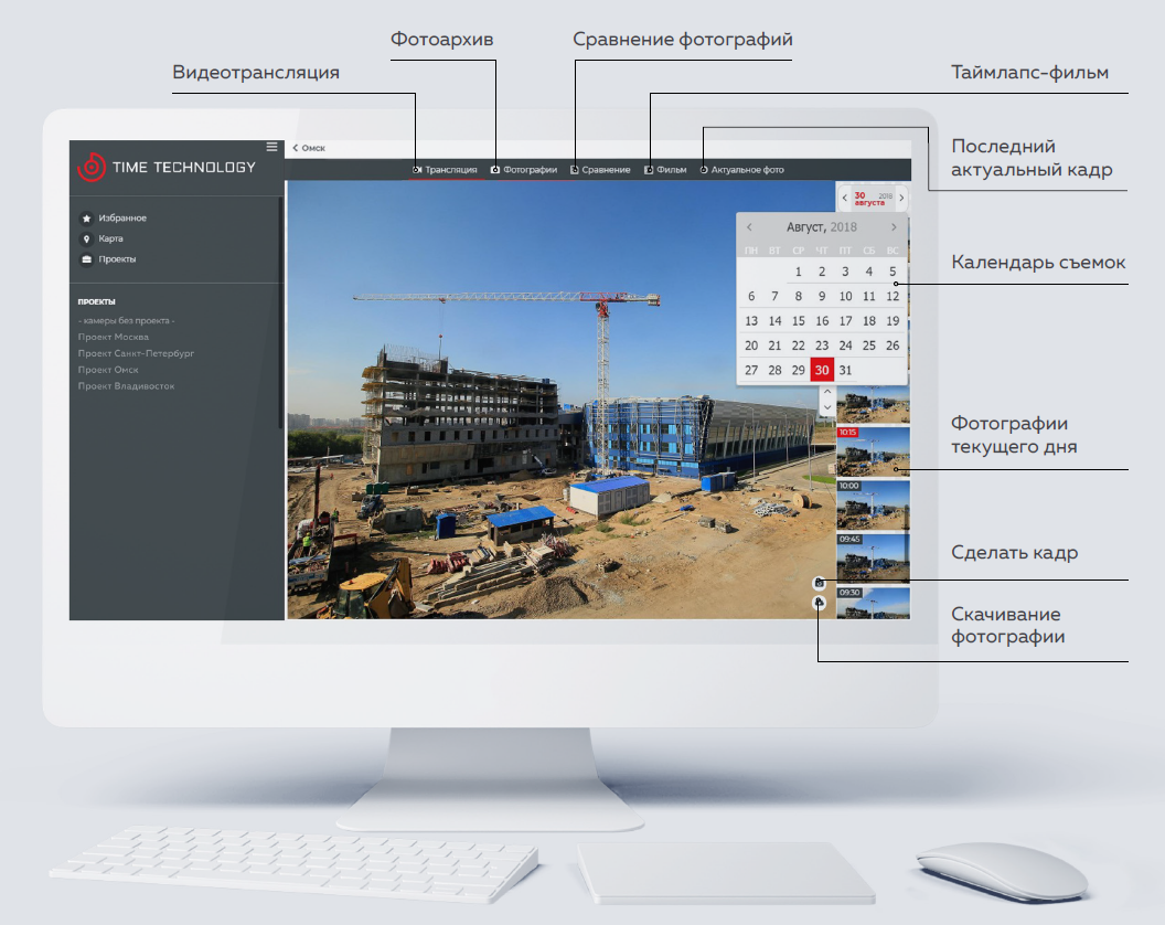 Онлайн доступ к фото-видеоархиву фотографий и таймлапс фильмам.